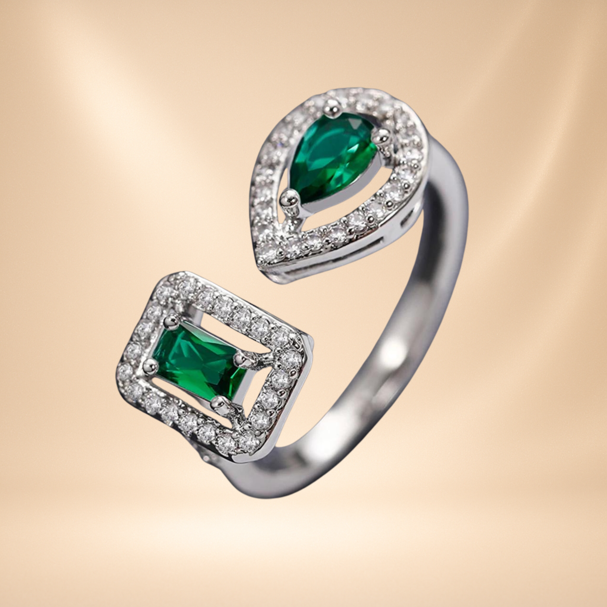 A bold fusion of power and elegance. This striking cuffed metal ring features two distinct stones at each end, creating a unique contrast that embodies strength and individuality. Designed for those with a strong personality just like yours!